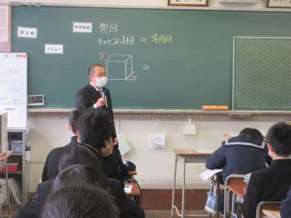 技術・家庭科の授業です。 キャビネット図を学習しました。