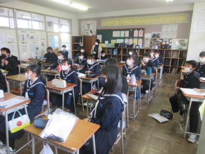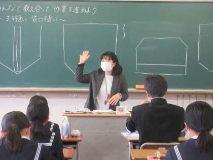 技術・家庭科の授業です。 まち縫い・袋口縫いにチャレンジしました。