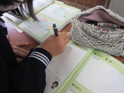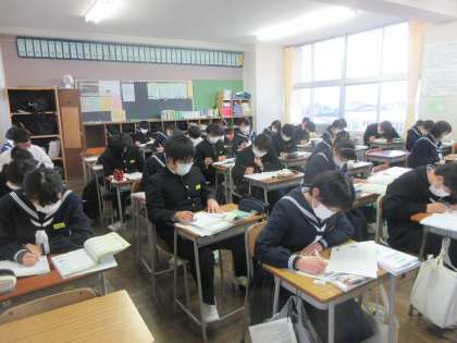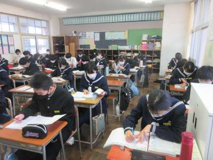 理科の授業です。 余った時間を利用して、テキスト学習に取り組みました。