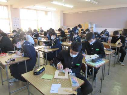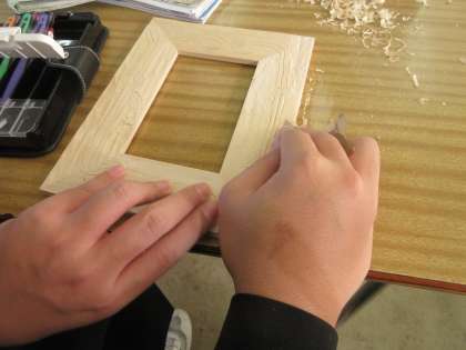 美術の授業です。 フォトフレームが出来上がってきました。