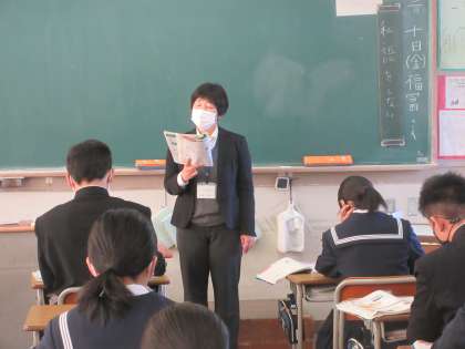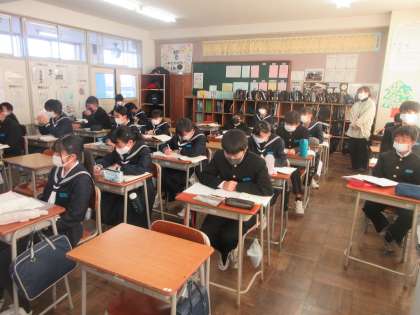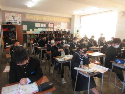 英語の授業です。 今、何をしているのか言えるように練習しました。