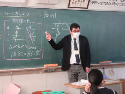数学の授業です。 平行線と比を学習しました。