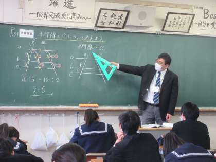 数学の授業です。 平行線と比について学習しました。
