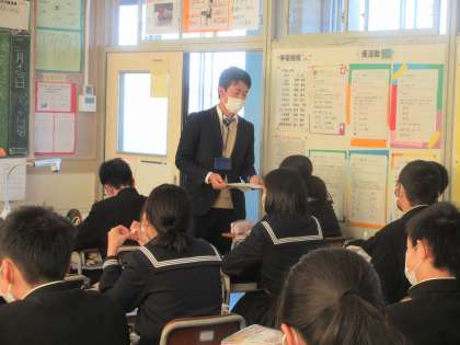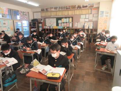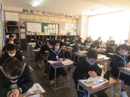 社会の授業です。 中世では、人々は協力してどのようなことを行っていたのかを学習しました。