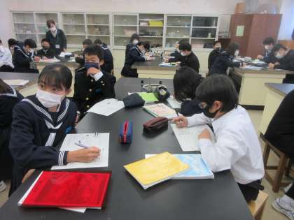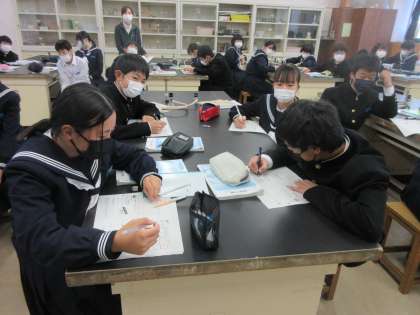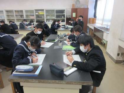 理科の授業です。 音の大きさや高さは、何と関係しているのかを学習しました。