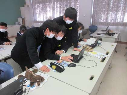 技術・家庭科の授業です。 条件分岐繰り返し型プログラムを使って、車を動かします。