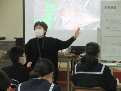 音楽の授業です。 雅楽「平調 越天楽」を鑑賞しました。