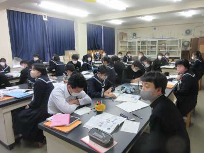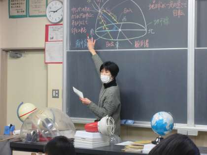理科の授業です。 太陽の一日の動きを観測します。