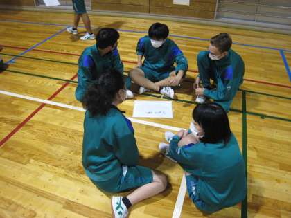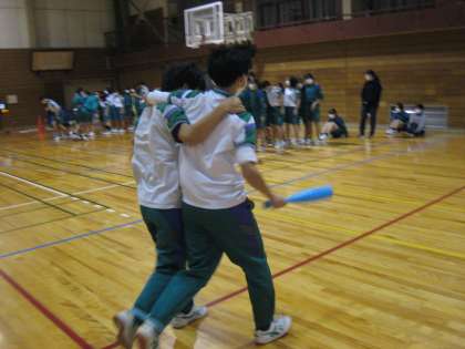 学年レクリエーション その2 公開日 2021/12/16 更新日 2021/12/16 第3学年 フリースローシュートがなかなか決まりません。先生の華麗なシュート。 ○○と言えばクイズでは、北部中と言えば挨拶と答えていました。心を合わせ二人三脚でバトンをつなぎました。