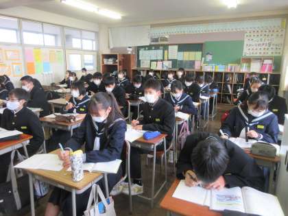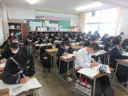 数学の授業です。 平行四辺形の性質を使って、図形の性質を証明しました。