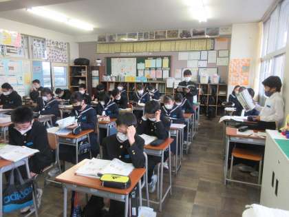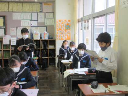英語の授業です。 本文の会話を音読しました。
