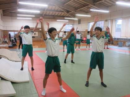 保健体育の授業です。 男子は、ダンスです。だいぶ揃ってきました!!