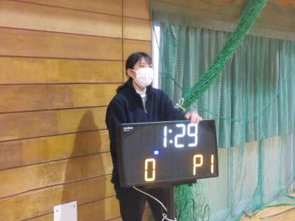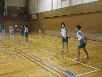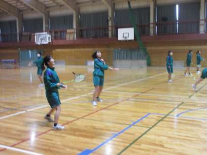 女子は、バドミントンです。 「いくよぉ〜!!」 「カ〜〜ン!!」見事なフレームショット!!