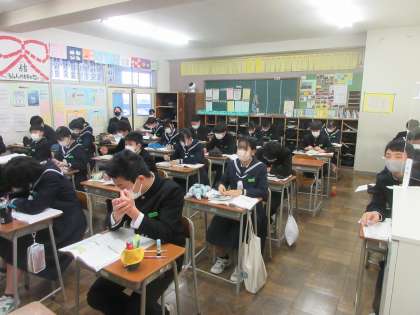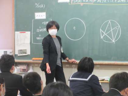 数学の授業です。 円周角の定理が成り立つことを証明しました。