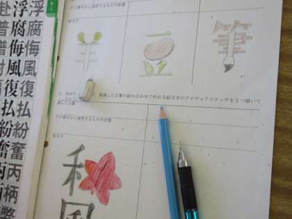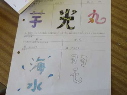 美術の授業です。 楽しく、工夫のある絵文字のアイディアの授業です。