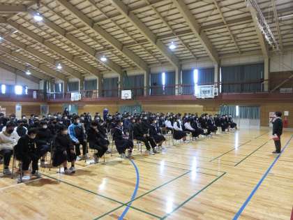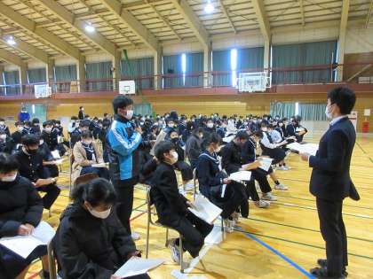 1学年 学年集会 公開日 2021/12/23 更新日 2021/12/23 第1学年 1学年では、5限に学年集会を行いました。 各クラスの級長たちが、2学期を振り返り総括しました。 その後は冬休みの過ごし方等を「冬休みのしおり」を基に確認しました。