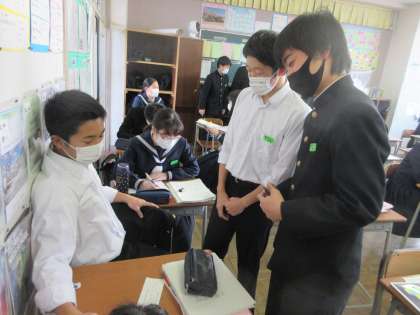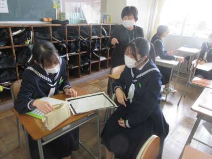 学活の時間です。 プリント等の整理をしました。 最後は、「はいポーズ!!」