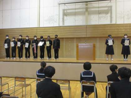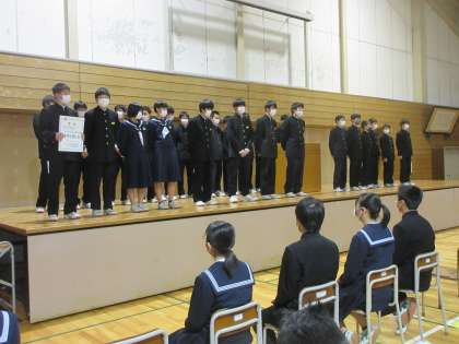 2学期に授賞した部活動等を報告しました。 ソフトテニス部とサッカー部です。