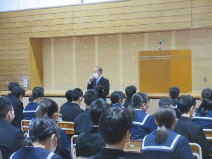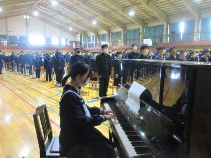 校歌を斉唱し、冬休みの注意事項等を確認しました。