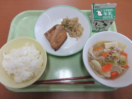 やっぱり冬は、鍋!! ごはん 牛乳 さばの照り焼き はりはりソテー 白菜鍋