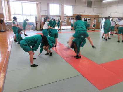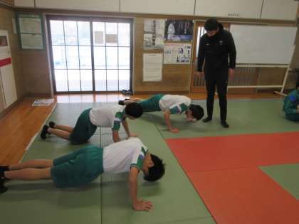 保健体育の授業です。 W-UPとして、筋トレと体幹トレーニングを行いました。
