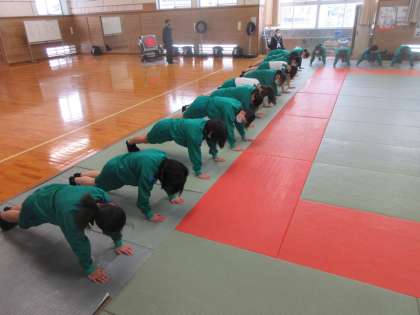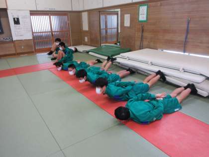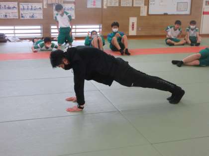 「こうやって、体を一枚の板にするんだよ!!」 「はい、そこ、おしりを上げない!!」