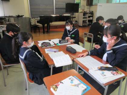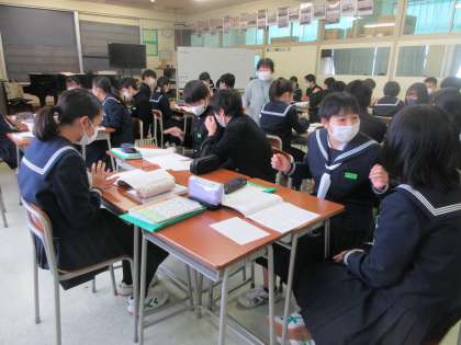音楽の授業です。 リズムアンサンブル(クラッピング)に挑戦しました。