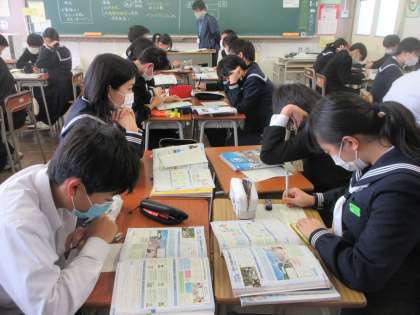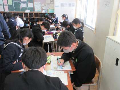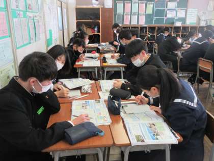 社会の授業です。 赤字バス路線に税金を使うべきかを考えました。