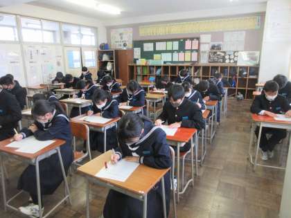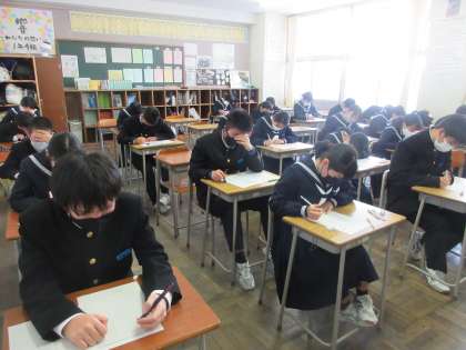 明日は残りの3教科、国語、理科、数学です。頑張りましょう!!