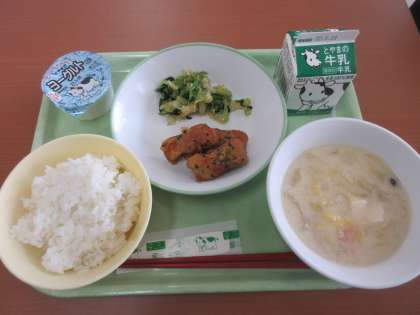 今日の給食 公開日 2022/01/14 更新日 2022/01/14 給食 豆腐、白菜、豆乳がベストマッチ!! こくのある絶品です。 ごはん 牛乳 ちくわのカレー揚げ しょうがひたし 豆乳汁 ヨーグルト