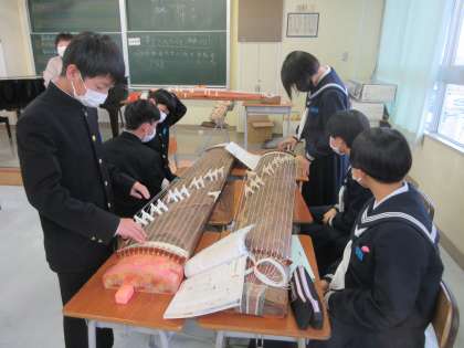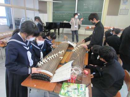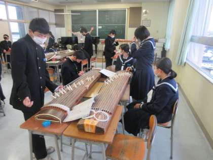 音楽の授業です。 琴の練習です。