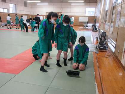 保健体育の授業です。 ダンスです。動画を見ながら研究中!!
