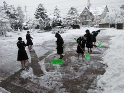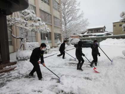 いつもより早く登校し、熱心に、汗をかきながら、黙々と除雪に取り組んでくれた生徒の皆さん!!みんなのために、ありがとう!!道具を大切にする心も育ってます!!
