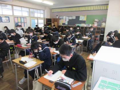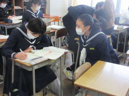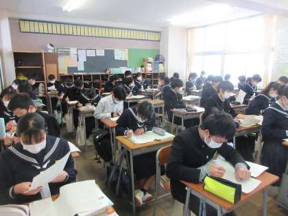 英語の授業です。 アンケート結果を基に、プレゼンテーションの準備をしました。
