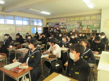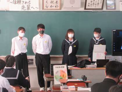 2−3 公開日 2022/01/26 更新日 2022/01/26 第2学年 英語の授業です。 「Research and Presentation」の発表です。 グループで調べた内容を、英語で発表します。