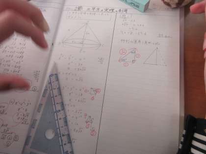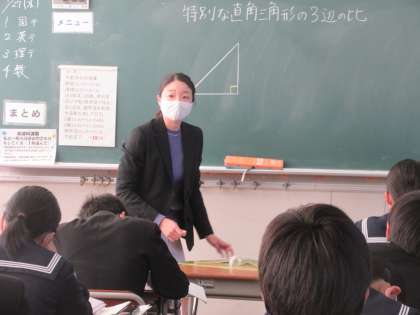 数学の授業です。 三平方の定理を利用して長さを求めました。