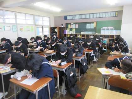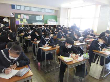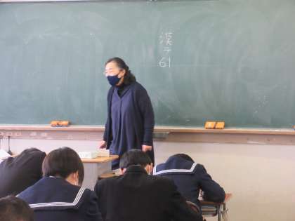 国語の授業です。 まずは、漢字テスト。積み重ねが大事です!!