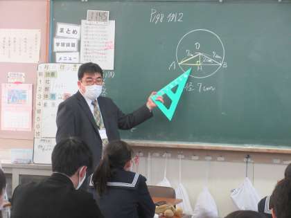 数学の授業です。 三平方の定理を使って、平面や空間の長さを求めました。