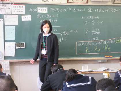 理科の授業です。 抵抗のつなぎ方による違いを学習しました。