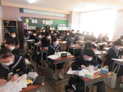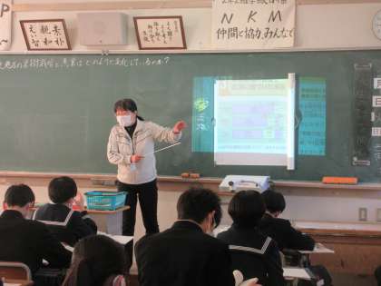 社会の授業です。 東北地方の果樹栽培と漁業を学習しました。 青森の人って、リンゴの種類をすぐに見分けるそうです。
