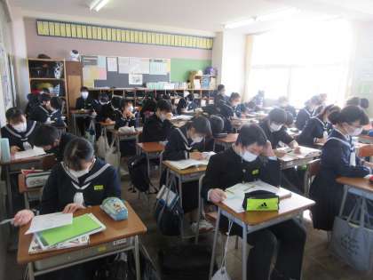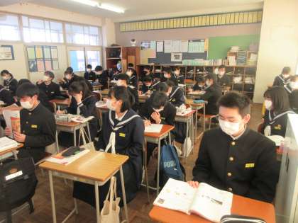 英語の授業です。 確認テストを振り返りました。