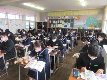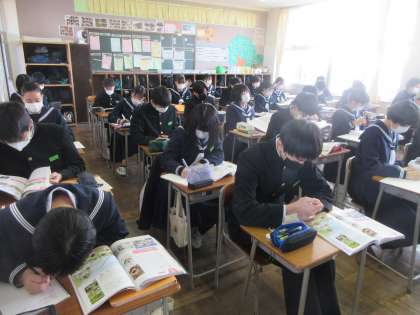 理科の授業です。 生物界の数量的な関係を学習しました。
