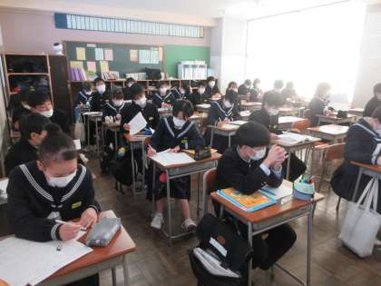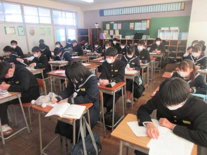 数学の授業です。 テストの解説と今後の学習ついて確認しました。