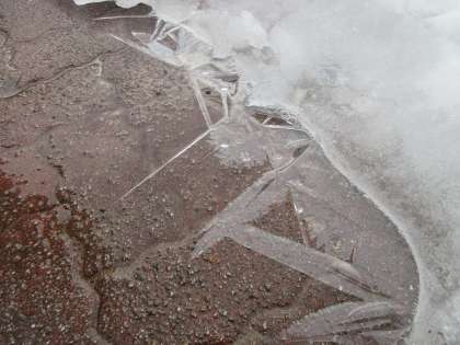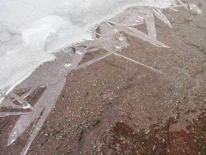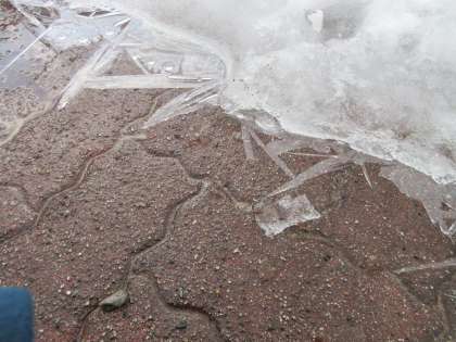 路面が凍結しています。慌てずに登下校しましょう!! 下校完了時刻は、16:15です。
