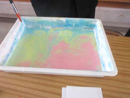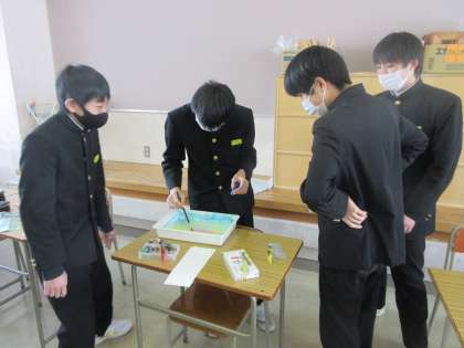 美術の授業です。 モダンテクニックを使って作品をつくります。