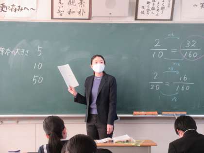 数学の授業です。 母集団の平均値を、標本調査によって推定しました。