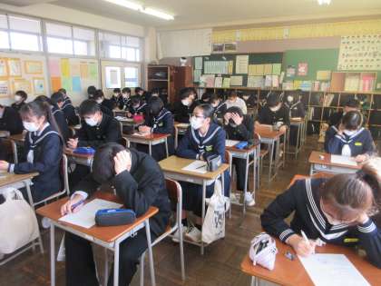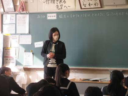 理科の授業です。 小テストのあと、磁石の周りの様子を学習しました。