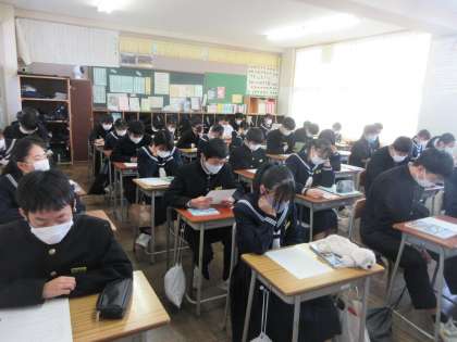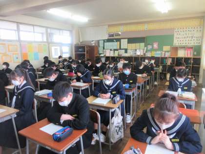 技術・家庭科の授業です。 進路に向けて、今後の学習方法等について話しました。