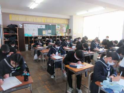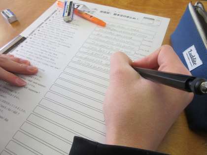 英語の授業です。 英文の基本文に取り組みます。