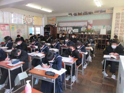 国語の授業です。 書き出しを工夫して「随筆」を書きました。作家の卵がこの中にいるかも・・・。